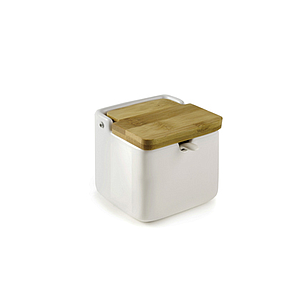 IBILI - Salero/azucarero ceramico con cuchara y tapa bambu 350 ml (Ref. 714800)