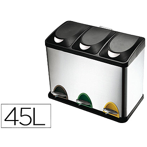 Q-CONNECT - PAPELERA CONTENEDOR METALICA CON TAPADERA DE PLASTICO Y PEDAL 3 DEPOSITOS 45L 605X340X485 MM (Ref.KF16550)