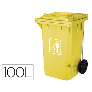 Q-CONNECT - PAPELERA CONTENEDOR PLASTICO CON TAPADERA 100L COLOR AMARILLO 750X470X370 MM CON RUEDAS (Ref.KF16543)