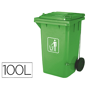 Q-CONNECT - PAPELERA CONTENEDOR PLASTICO CON TAPADERA 100L COLOR VERDE 750X470X370 MM CON RUEDAS (Ref.KF16542)