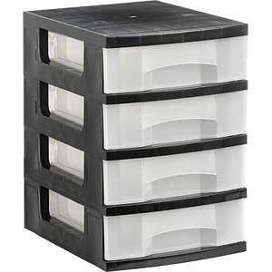 ARCHIVO 2000 - TORRE DE ALMACENAJE 4 CAJONES DE 6 LITROS NEGRO/TRANSLÚCIDO 390X290X430 MM (Ref.1104 CS TL)