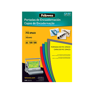 FELLOWES - Pack DE 100 PORTADAS PVC OPACO NEGRO A4 180 MICRAS (Ref.5100301)