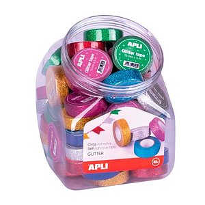 APLI - EXPOSITOR CINTA DE PAPEL ADHESIVA DECORATIVA GLITTER ROLLO 15MMX5M COLORES SURTIDOS -60U- (Ref.18520)