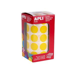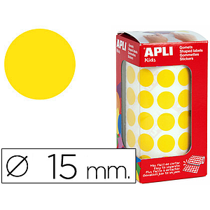 APLI - GOMETS AUTOADHESIVOS CIRCULARES 15 MM AMARILLO EN ROLLO CON 2832 UNIDADES (Ref.4855)