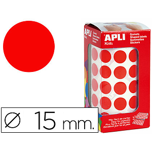 APLI - GOMETS AUTOADHESIVOS CIRCULARES 15 MM ROJO EN ROLLO CON 2832 UNIDADES (Ref.4857)