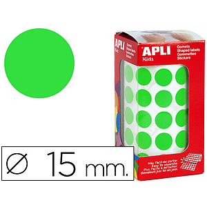 APLI - GOMETS AUTOADHESIVOS CIRCULARES 15 MM VERDE EN ROLLO CON 2832 UNIDADES (Ref.4858)