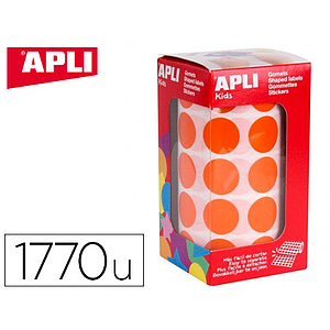 APLI - Gomets autoadhesivos circulares 20 mm naranja en rollo de 1770 unidades (Ref. 11488)
