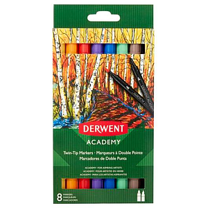 DERWENT - ACADEMY ROTULADORES DOBLE PUNTA ( FINA Y PINCEL ) SURTIDOS CAJA DE 8UD (Ref.98206)