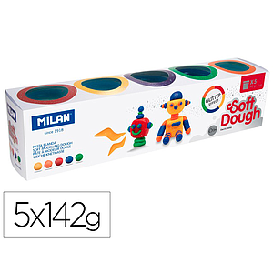 MILAN - Pasta para modelar soft dough neon caja de 5 botes colores surtidos 142 g (Ref. 913505N)