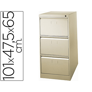 FICHERO CAJONES DE SUELO METALICO DE 3 CAJONES 101 ALTO,65 PROF. 47,5 ANCHO COLOR BEIGE N.34 ANTIVUELCO (Ref.F-1003A-BE)