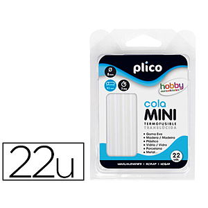 PLICO - Barra termofusible mini translucida 8 mm de diamero x 100 mm de alto blister 22 unidades (Ref. 1641)