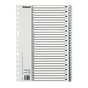 ESSELTE - INDICE PP NUMERICO A4 pestañas 1-31 11 taladros GRIS con IND.B/N (Ref.49210)