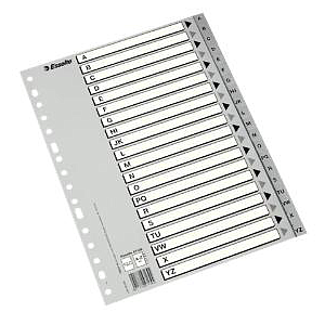 ESSELTE - INDICE PP ALFABETICO Fº 20 pestañas 16 taladros GRIS (11604) (Ref.47139)