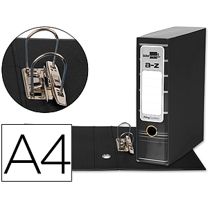 LIDERPAPEL - ARCHIVADOR DE PALANCA A4 FILING SYSTEM FORRADO SIN RADO LOMO 80MM NEGRO CON CAJA Y COMPRESOR METALICO (Ref.AZ15)