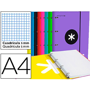 LIDERPAPEL - CARPETA CON RECAMBIO ANTARTIK A4 CUADRO 5 MM FORRADA 4 ANILLAS 25MM COLORES SURTIDOS (Ref.KA36)