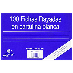 MARIOLA - PACK 100 FICHAS RAYADAS CARTULINA DIMENSIONES 150x100 MM (Ref.3113R)