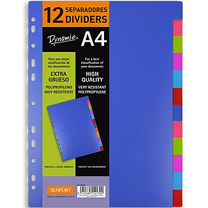 SENFORT - JUEGO 12 SEPARADORES A4 PP RÍGIDO DYNAMIC C/SURTIDOS (Ref.302070)