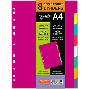 SENFORT - JUEGO 8 SEPARADORES A4 PP RÍGIDO DYNAMIC C/SURTIDOS (Ref.302020)