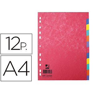 Q-CONNECT - SEPARADOR CARTULINA JUEGO DE 12 SEPARADORES DIN A4-MULTITALADRO (Ref.KF00188)