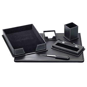 ARTESANIA - ESCRIBANIA DE SOBREMESA NEGRO SIMIL PIEL JUEGO DE 6 PIEZAS (Ref.80-DSCB6)