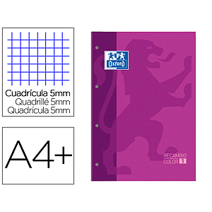 OXFORD - Recambio color 1 din a4+ 80 hojas 90 gr cuadro 5 mm 4 taladros color morado (Ref. 400123682)