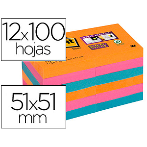 POST-IT - Bloc de notas adhesivas quita y pon super sticky 51x51 mm pack de 12 bloc colores intensos surtidos (Ref. 622-12SS-EG)