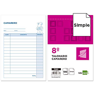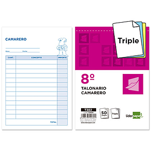LIDERPAPEL - TALONARIO CAMARERO 8º ORIGINAL Y 2 COPIAS (Ref.T302)