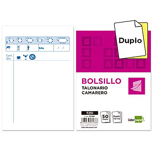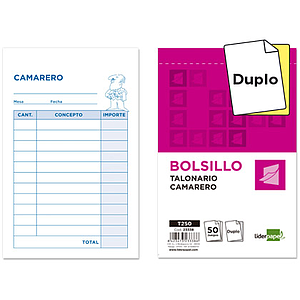 LIDERPAPEL - TALONARIO CAMARERO BOLSILLO ORIGINAL Y COPIA (Ref.T250)