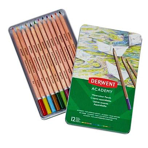 DERWENT - ACADEMY WATERCOLOUR LÁPICES DE COLORES ACUARELABLES SURTIDOS EN CAJA METÁLICA DE 12UD (Ref.2301941)