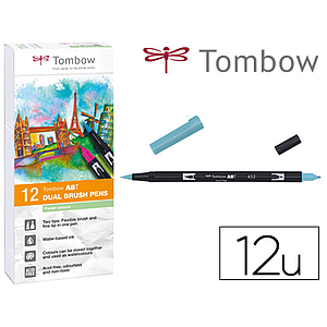 TOMBOW - Estuche 12 rotuladores Dual Brush doble punta pincel. Colores pastel. (Ref.ABT-12P-2)