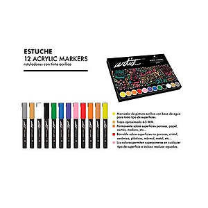 ALEX BOG - ESTUCHE 12 ROTULADORES ACRÍLICOS GAMA ARTIST COLORES SURTIDOS (Ref.AB-0612)