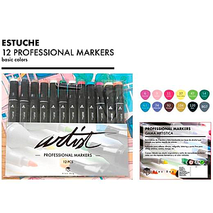 ALEX BOG - ESTUCHE 12 ROTULADORES GAMA ARTIST DOBLE PUNTA C/SURTIDOS BÁSICOS (Ref.AB-0712)