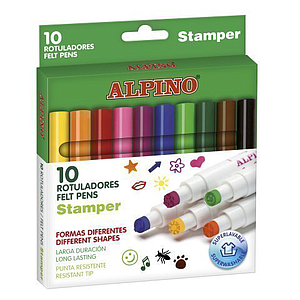 ALPINO - Estuche 10 rotuladores gruesos surtidos con stamper (Ref.AR000059)