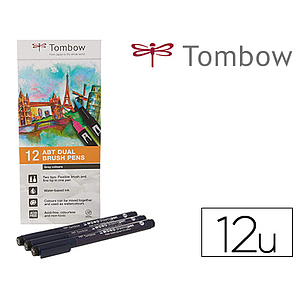 TOMBOW - Estuche 12 rotuladores Dual Brush doble punta pincel. Colores primarios. (Ref.ABT-12P-1)