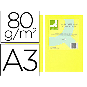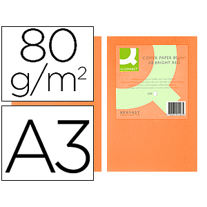Q-CONNECT - PAPEL COLOR DIN A3 80GR ROJO INTENSO PAQUETE DE 500 HOJAS (Ref.KF18009)