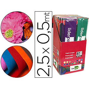LIDERPAPEL - PAPEL CRESPON 0.50 X 2.50 MT ENCELOFANADO -EXPOSITOR DE 80 UNIDADES COLORES SURTIDOS (Ref.CP20)