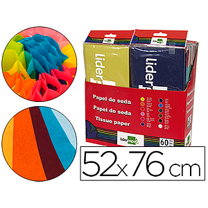 LIDERPAPEL - PAPEL SEDA 52X76 CM EXPOSITOR 60 BOLSAS DE 5 HOJAS12 COLORES SURTIDOS (Ref.SE03)