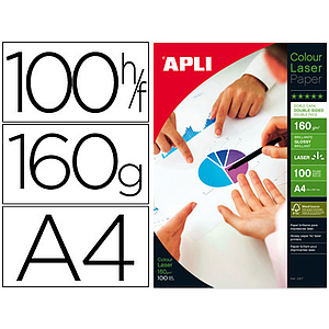 APLI - PAPEL FOTOGRAFICO GLOSSY DOBLE CARA DIN A4 PACK DE 100 HOJAS 160 GR (Ref.11817)