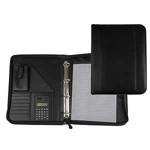 ARTESANIA - CARPETA PORTAFOLIOS NEGRA 260X355 MM CREMALLERA 4 ANILLAS 40 MM CALCULADORA CON BOLSA PARA MOVIL (Ref.80-848)