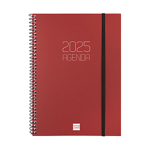 LIDERPAPEL - AGENDA ANUAL 2025 - SYROS - Espiral - Día Página - A5 148x210mm - ROJA (Ref.170420)