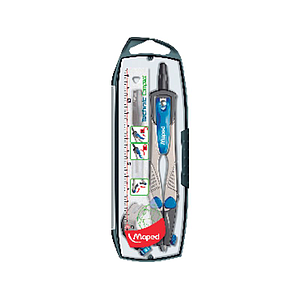 MAPED - Compases Technic Estuche 4 piezas:1 compas,1 abrazadera,1 afilaminas, 1 estuche minas (Ref.538700)