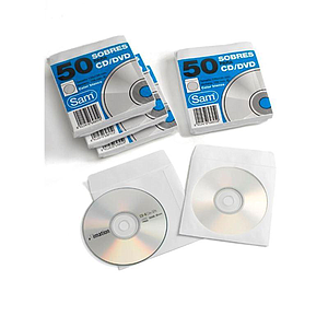 SAM - SOBRES para CD/DVD 125x125 con VENTANA (ENGOM.AUTOADH.) PAQUETE de 50 (Ref.664897)