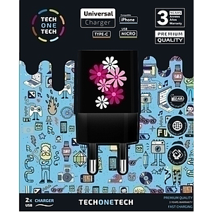 TECH ON TECH - CARGADOR DOBLE DE PARED BLACK FOWER POWER ALTO RENDIMIENTO 2,4A (Ref.TEC2601)